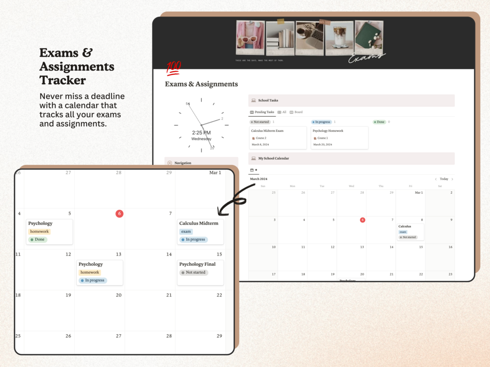 - 📅 Exams and Assignments Calendar: Never miss a deadline again with a centralized calendar directly on your dashboard.
